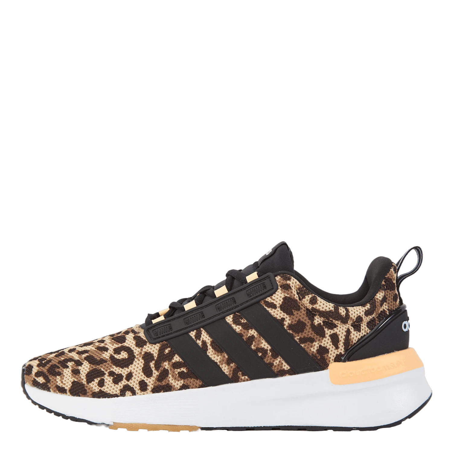 Polstrede sneakers lavet delvist med genbrugsmaterialer. Når livet kommer til dig en kilometer i minuttet, så bliv et skridt foran i disse adidas-løbesko. Cloudfoam Super mellemsålen er designet til overlegen komfort og dæmpning, så du nemt kan bevæge dig. Den bløde overdel er pyntet med leopardpletter, hvilket tilføjer en stilfuld kant til ethvert outfit.